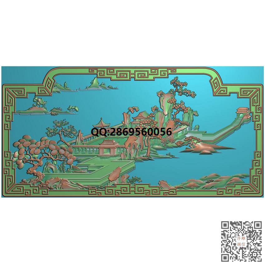 ZTGM-080山水顶箱柜带线_山水风景人物背板挂屏精雕图_浮雕图_灰度图_CNC数控刀路