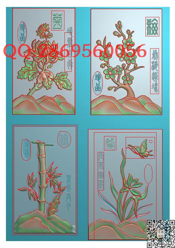 花鸟门板 花鸟衣柜门板 四季花鸟 四君子花 花草 花鸟背板 花鸟靠背 梅兰竹菊门板 梅兰竹菊挂屏 梅花 兰花 竹子 菊花_梅兰竹菊花鸟抽屉315...