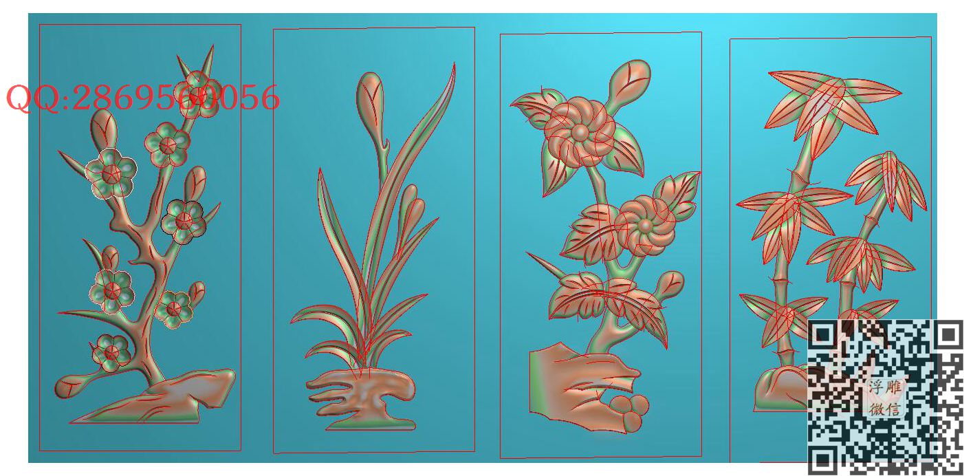 花鸟门板 花鸟衣柜门板 四季花鸟 四君子花 花草 花鸟背板 花鸟靠背 梅兰竹菊门板 梅兰竹菊挂屏 梅花 兰花 竹子 菊花_梅兰竹菊2822...