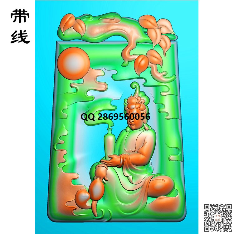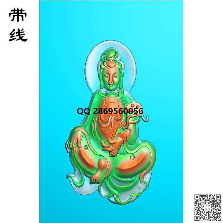 文殊菩萨挂件带线_玉雕观音挂件精雕图_浮雕图_灰度图_CNC数控刀路