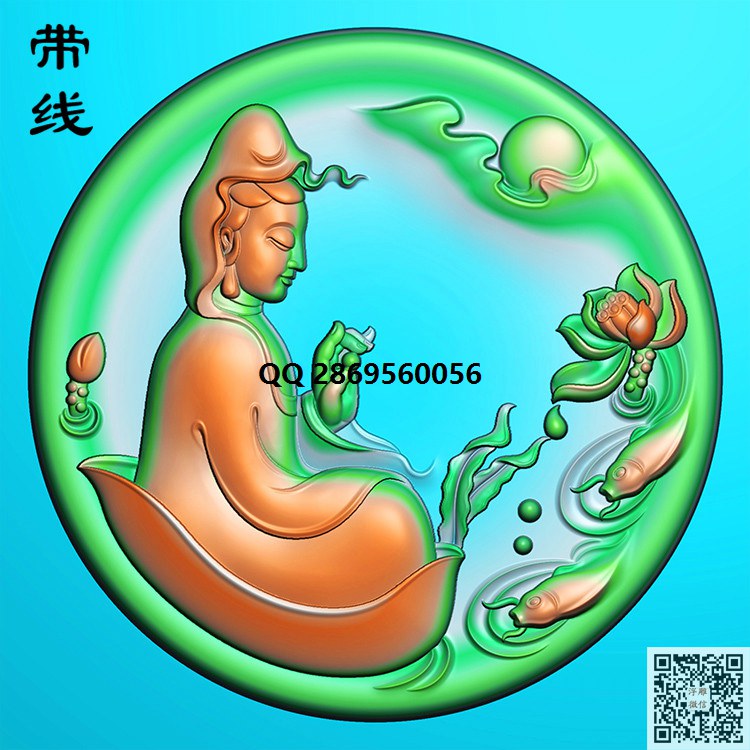 莲蓬观音精雕图(ZGY-036)_观音挂件精雕图46牌玉雕观音牌子精雕图_浮雕图_灰度图_CNC数控刀路