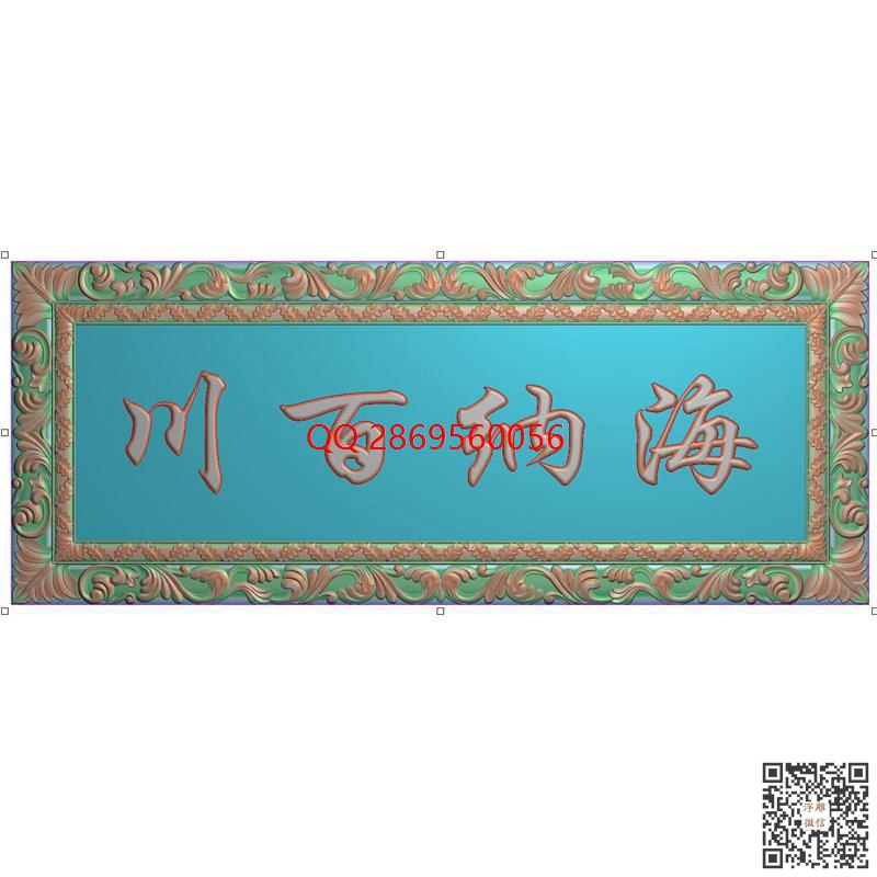 SC-212海纳百川横屏挂匾牌匾 仿古洋花边框牌匾外框_仿古挂屏精雕图_浮雕图_灰度图_CNC数控刀路
