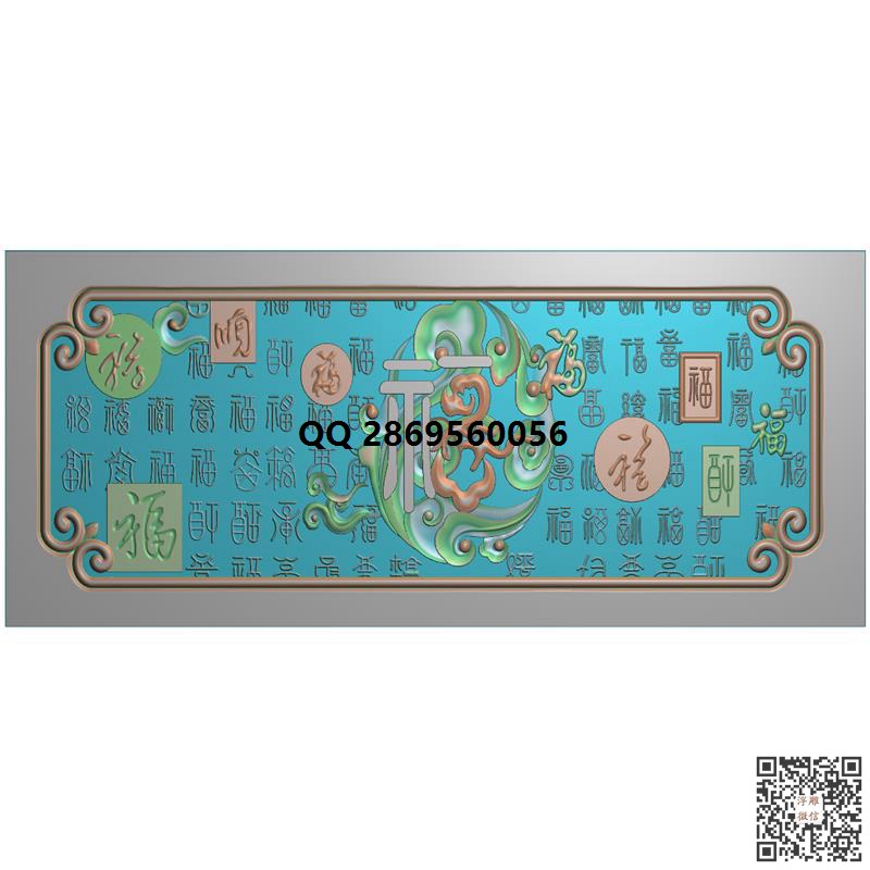 带字福字壁挂精雕图百福挂屏带线_牌匾屏风挂屏精雕图挂匾字牌文字精雕图_浮雕图_灰度图_CNC数控刀路