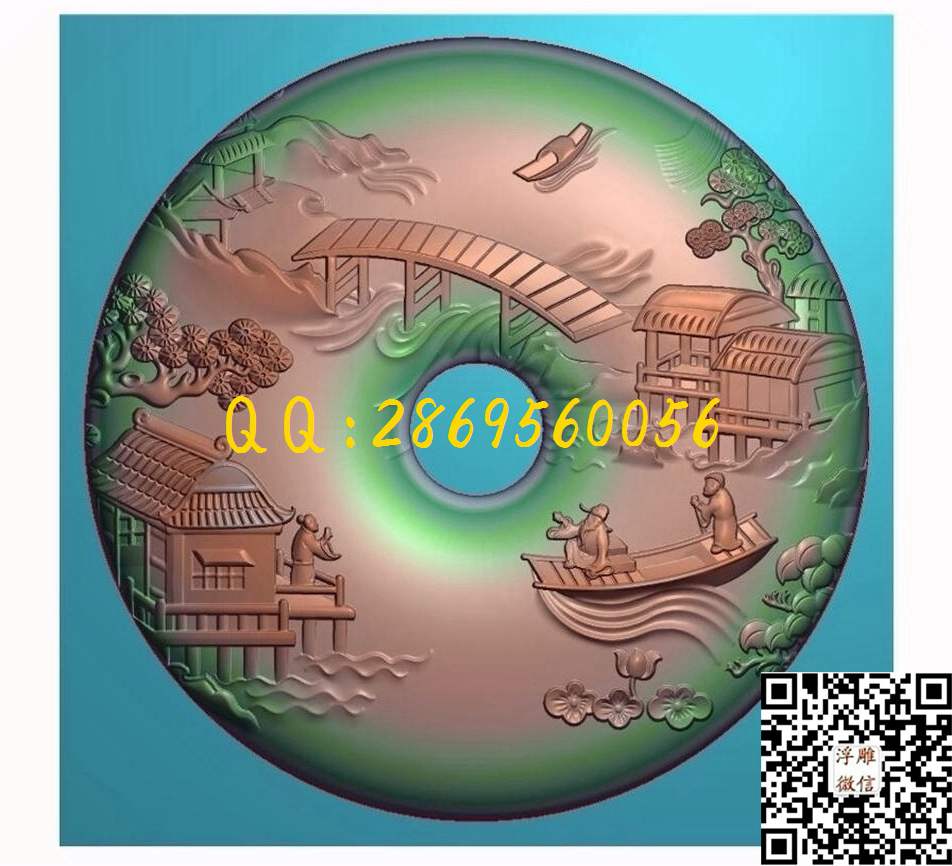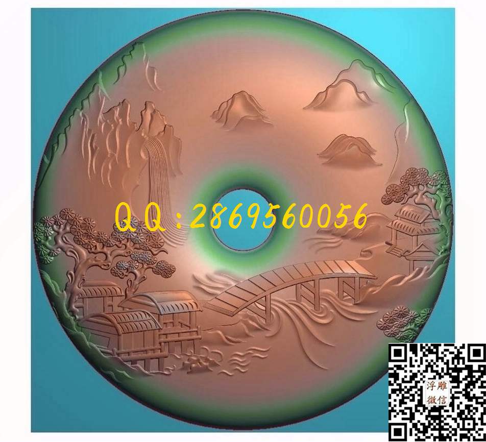 山水平安扣带线_圆牌玉雕图平安扣圆牌玉石雕刻精雕图_浮雕图_灰度图_CNC数控刀路