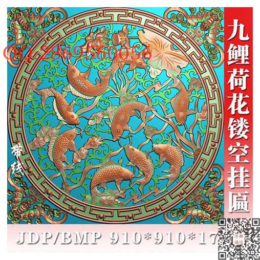 圆形镂空图 福字 镂空福 福鱼 年年有余挂匾 花鸟 竹报平安 竹子鸟_Y-040福字九鲤鱼圆匾图...