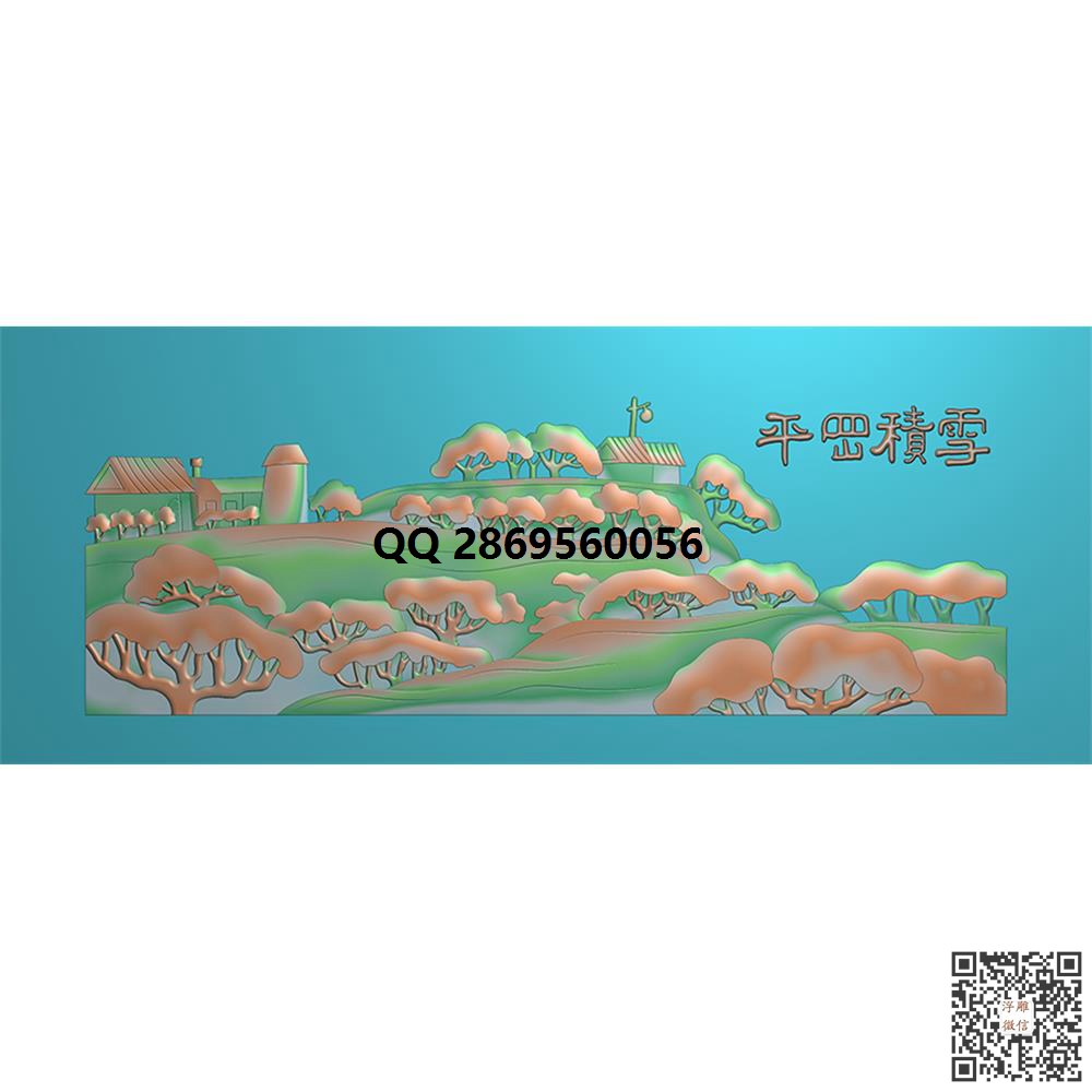 SS-190 山 雪 房子 横向_山水精雕图山水屏风风景挂屏精雕图_浮雕图_灰度图_CNC数控刀路