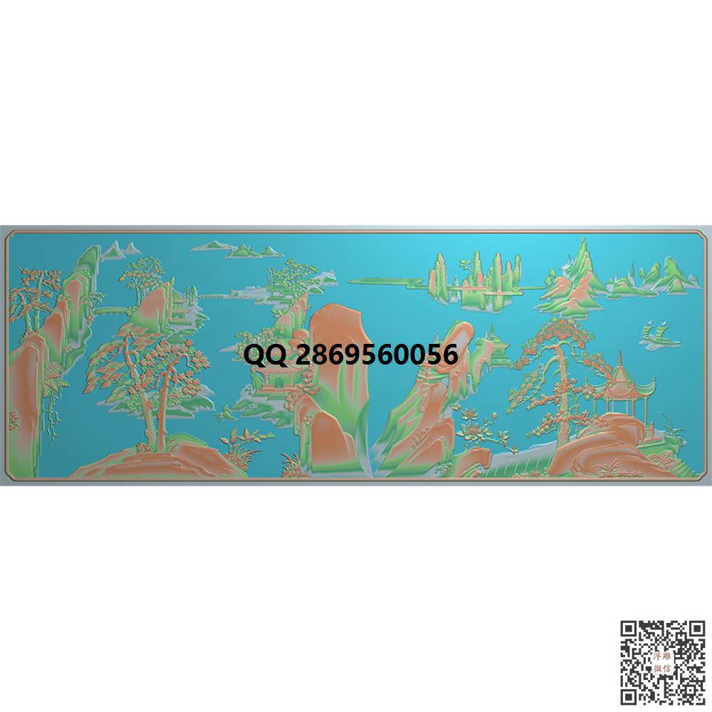 山水背板618-395_山水沙发背板精雕图精雕图_浮雕图_灰度图_CNC数控刀路
