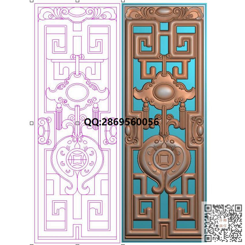 草花鲤鱼精品洋花福字吊双鱼铜钱如意背板门板蝙蝠背板精雕图_浮雕图_灰度图_CNC数控刀路